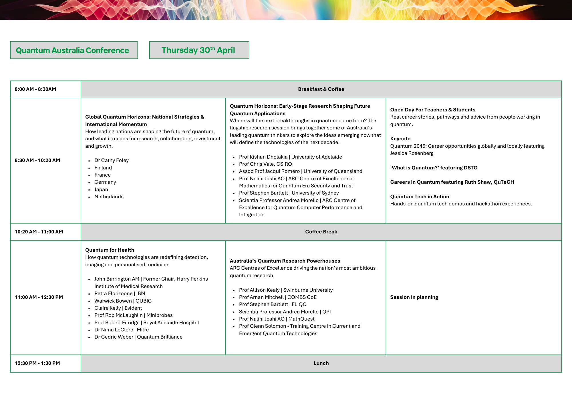 With developers and end-users sharing the stage, the program offers an unparalleled look at both the technology and its application. This is where partnerships form, strategies take shape, and ideas move from the lab to the marketplace, ensuring Australia’s quantum edge translates into industry growth and national prosperity.